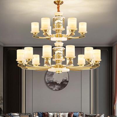 • 材质全铜灯臂+玉石锅底+玉石灯罩+铁艺