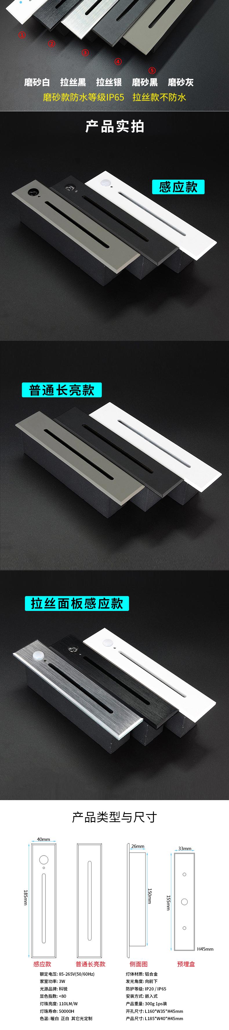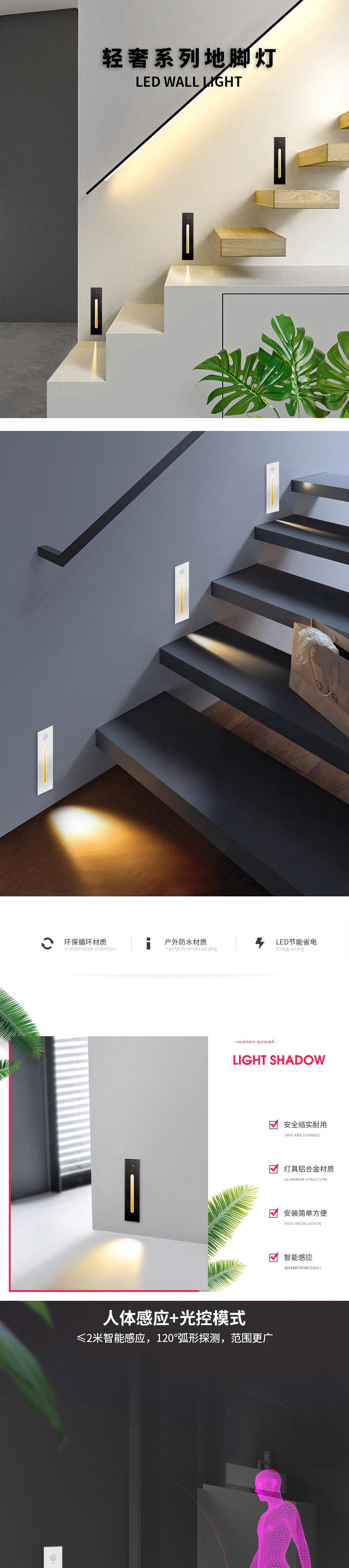 led楼梯感应灯智能人体感应家用过道踢脚地脚灯嵌入式网红踏步灯