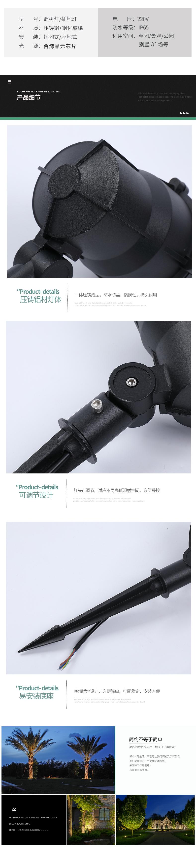 led射灯户外防水灯花园别墅投射灯射树灯园林草坪插地灯照树灯