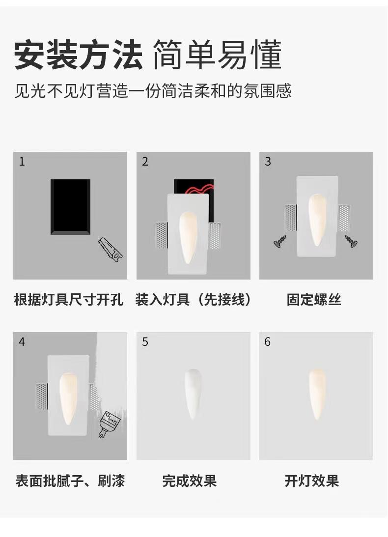 嵌入式石膏壁灯无主灯客厅背景墙水滴装饰卧室床头楼梯台阶踢脚灯NV1309
