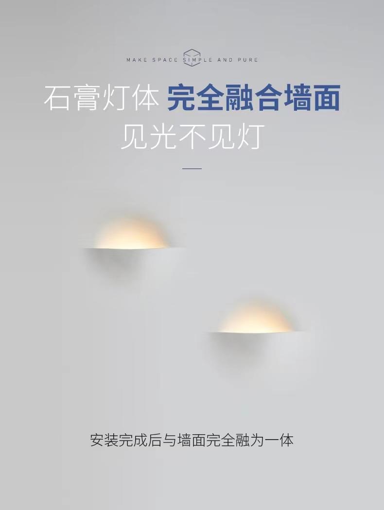 极简ins奶油风石膏壁无边框嵌入式圆形筒灯1543