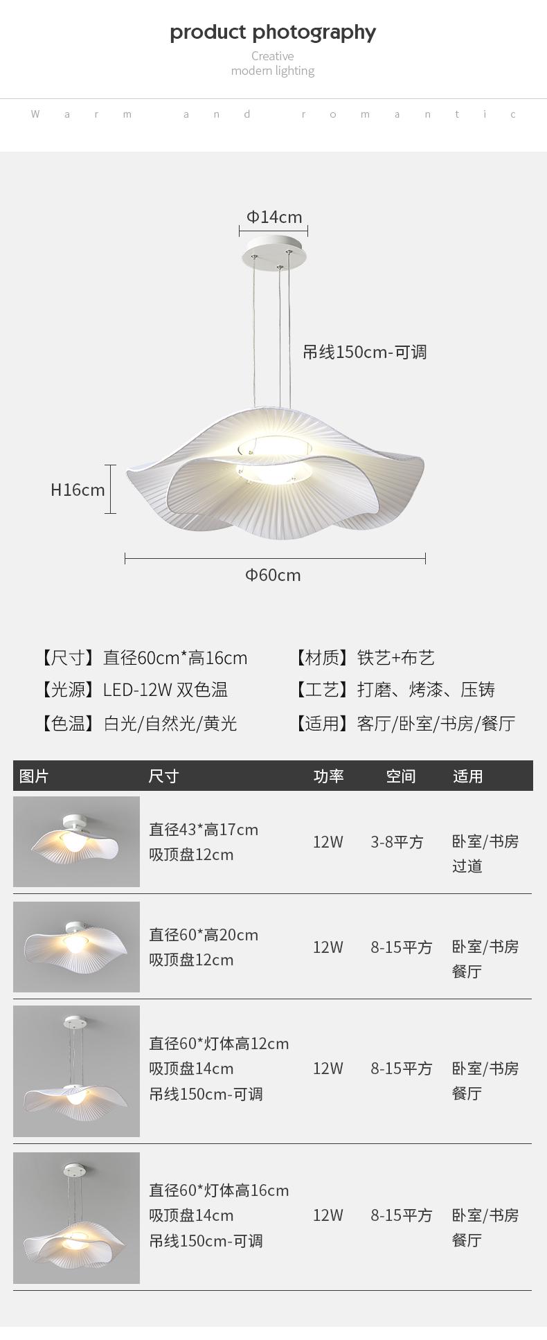 白色 ¢430*H170mm 双色12w