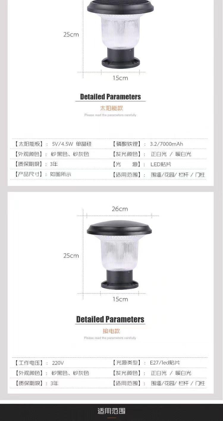 太阳能户外别墅围栏庭院灯太阳能柱头灯ZTD2204