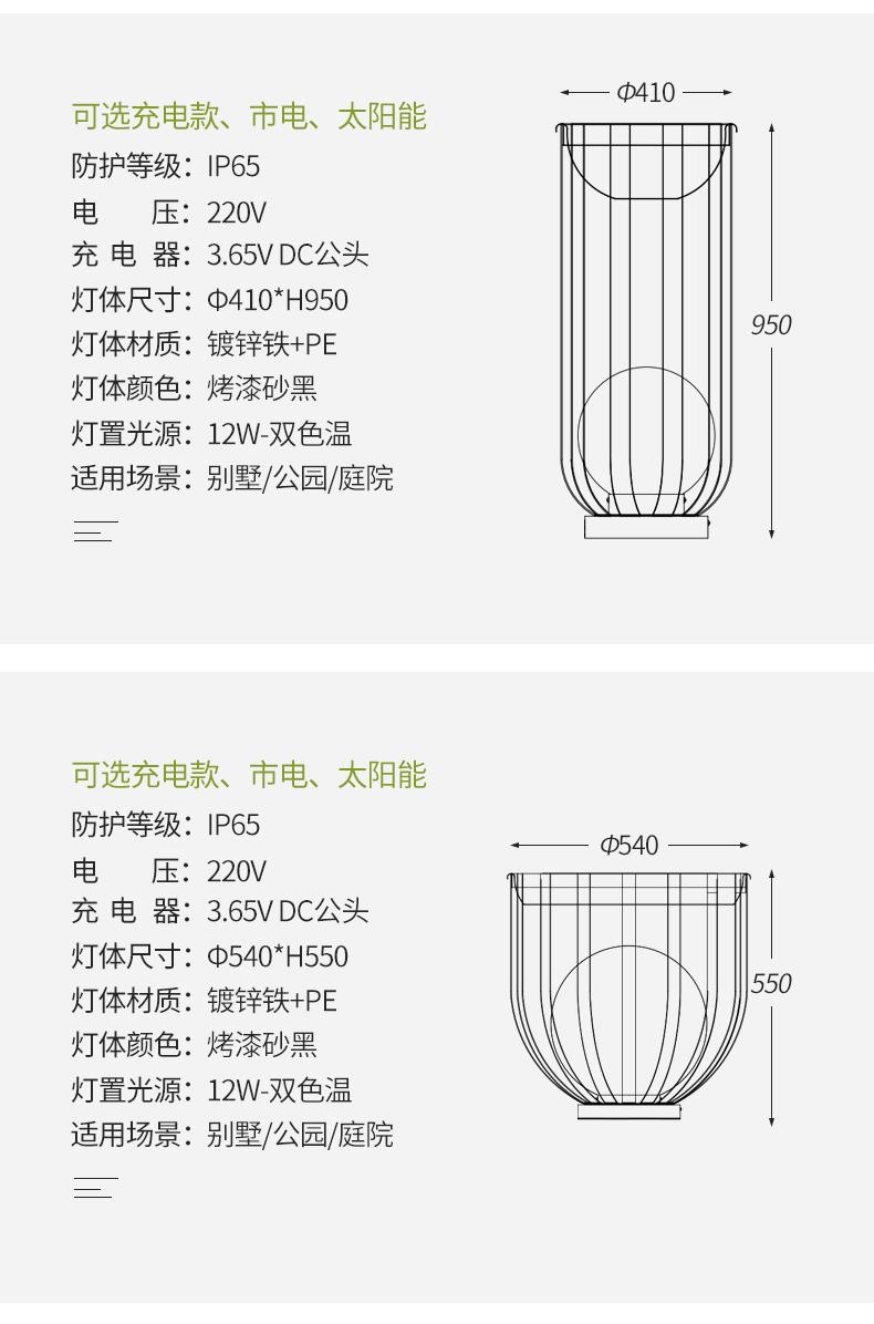 ¢410*H950mm 12W 太阳能款