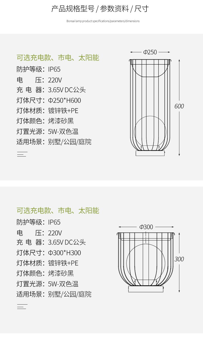 ¢250*H600mm 5W 太阳能款