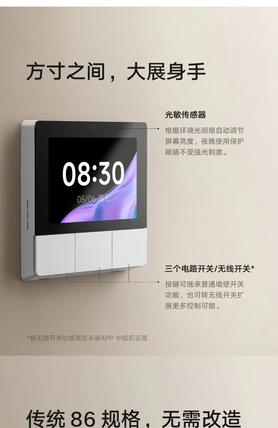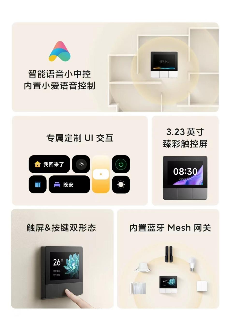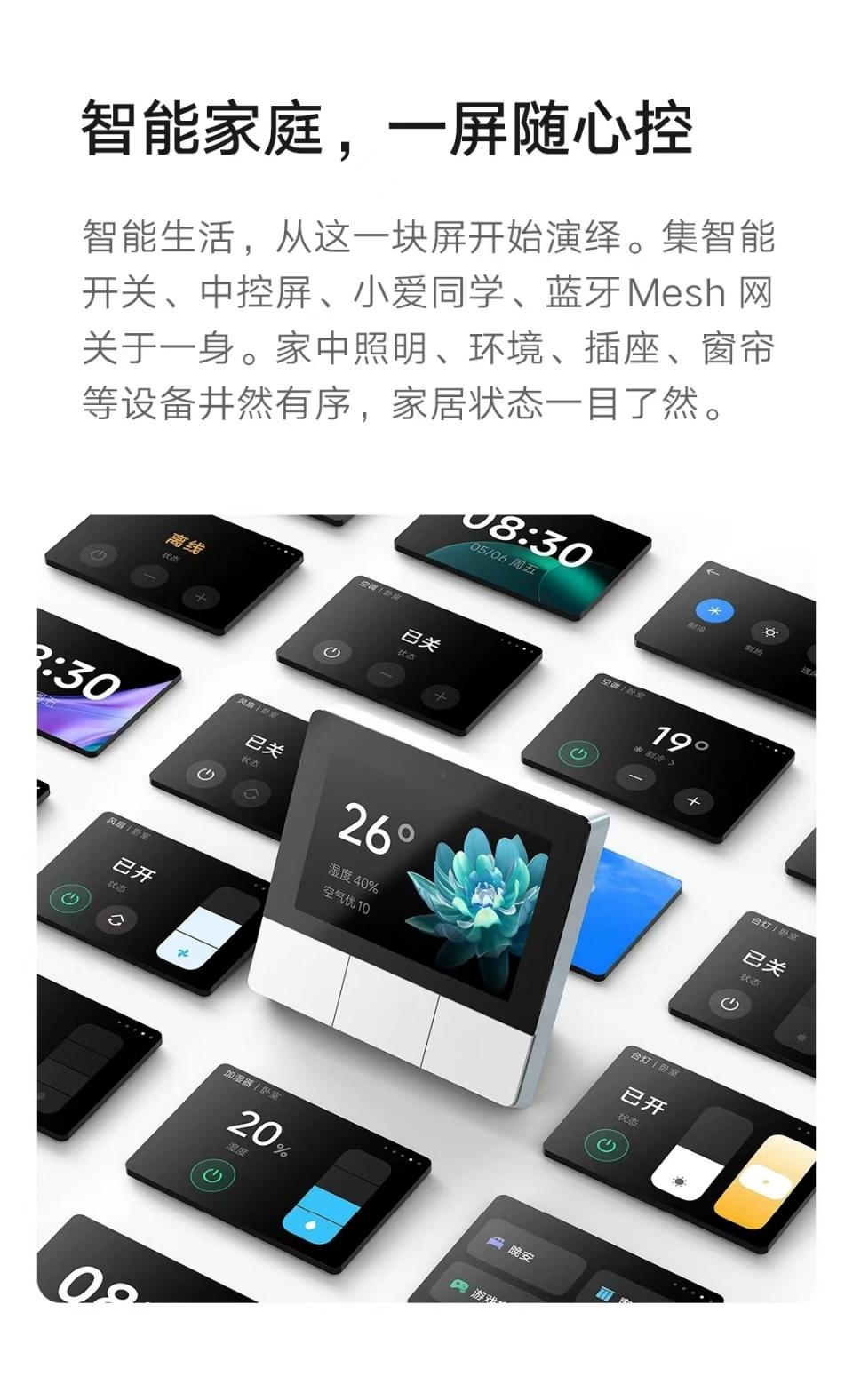 米家智能家庭面板家用中控屏小爱同学蓝牙网关智能控制板