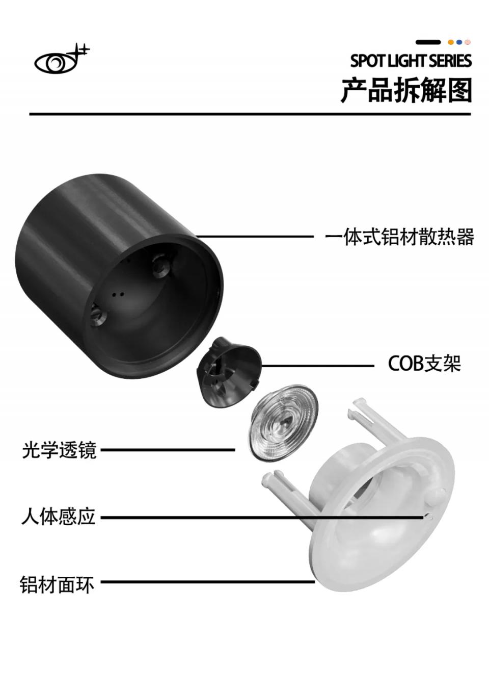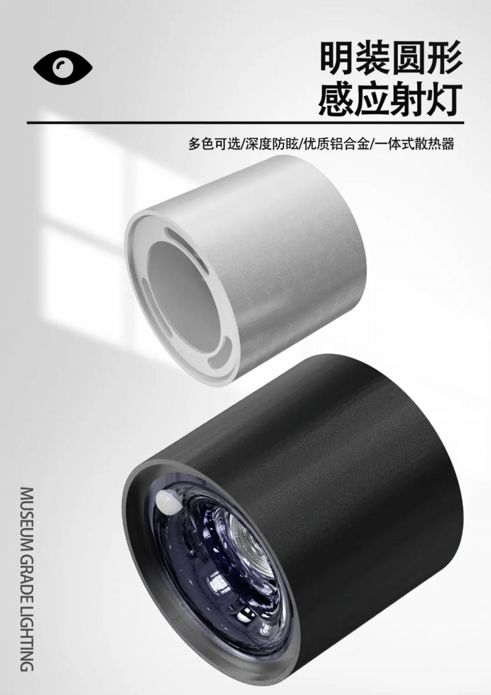 1304支架36º防眩射灯卡姿二代超薄明装圆形感应射灯