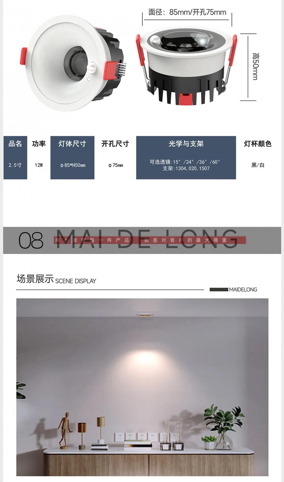 面径 ¢90*H80mm 75开孔 12W 白杯