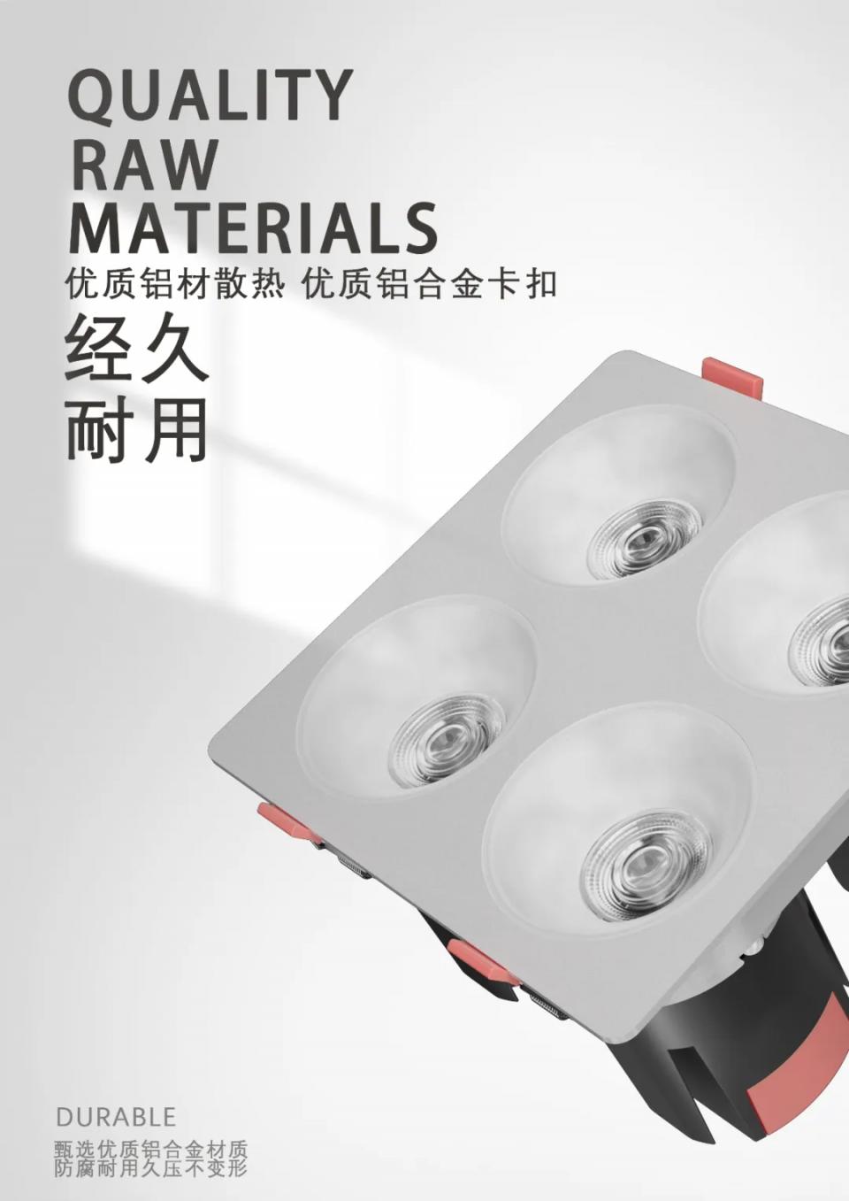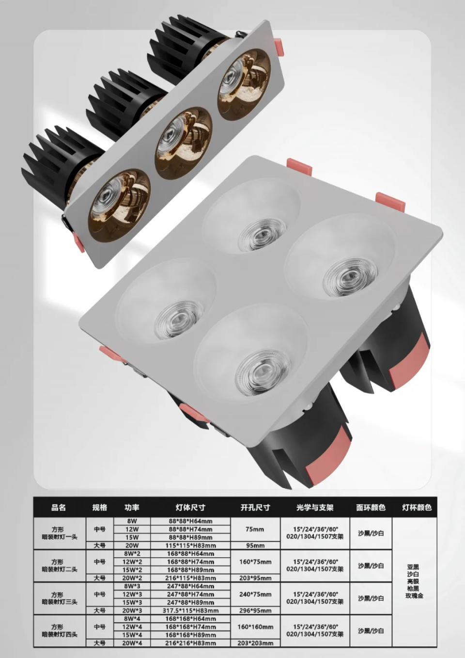 1304支架36º防眩射灯卡姿二代暗装方形防水射灯双头