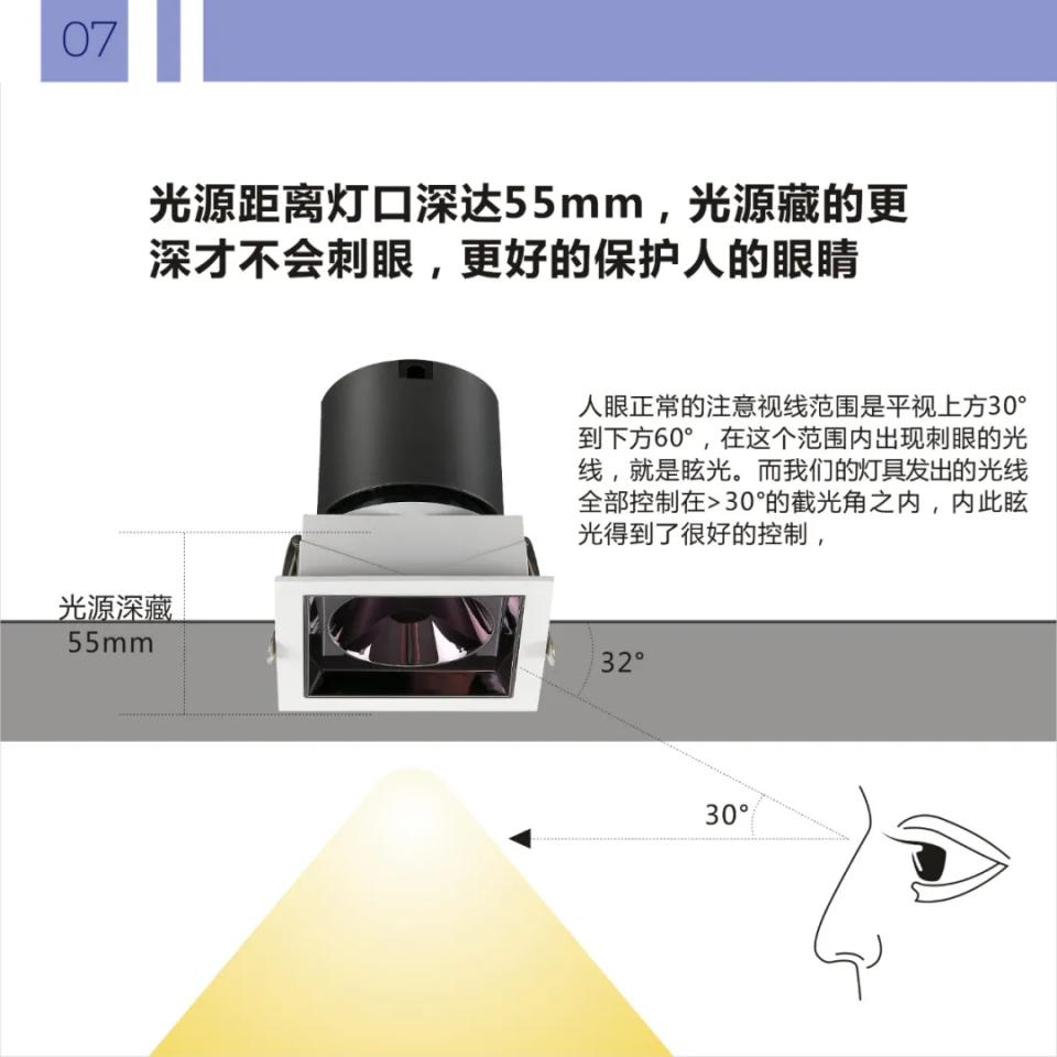 1304支架36º角防眩射灯卡姿5代射灯暗装方形四头款