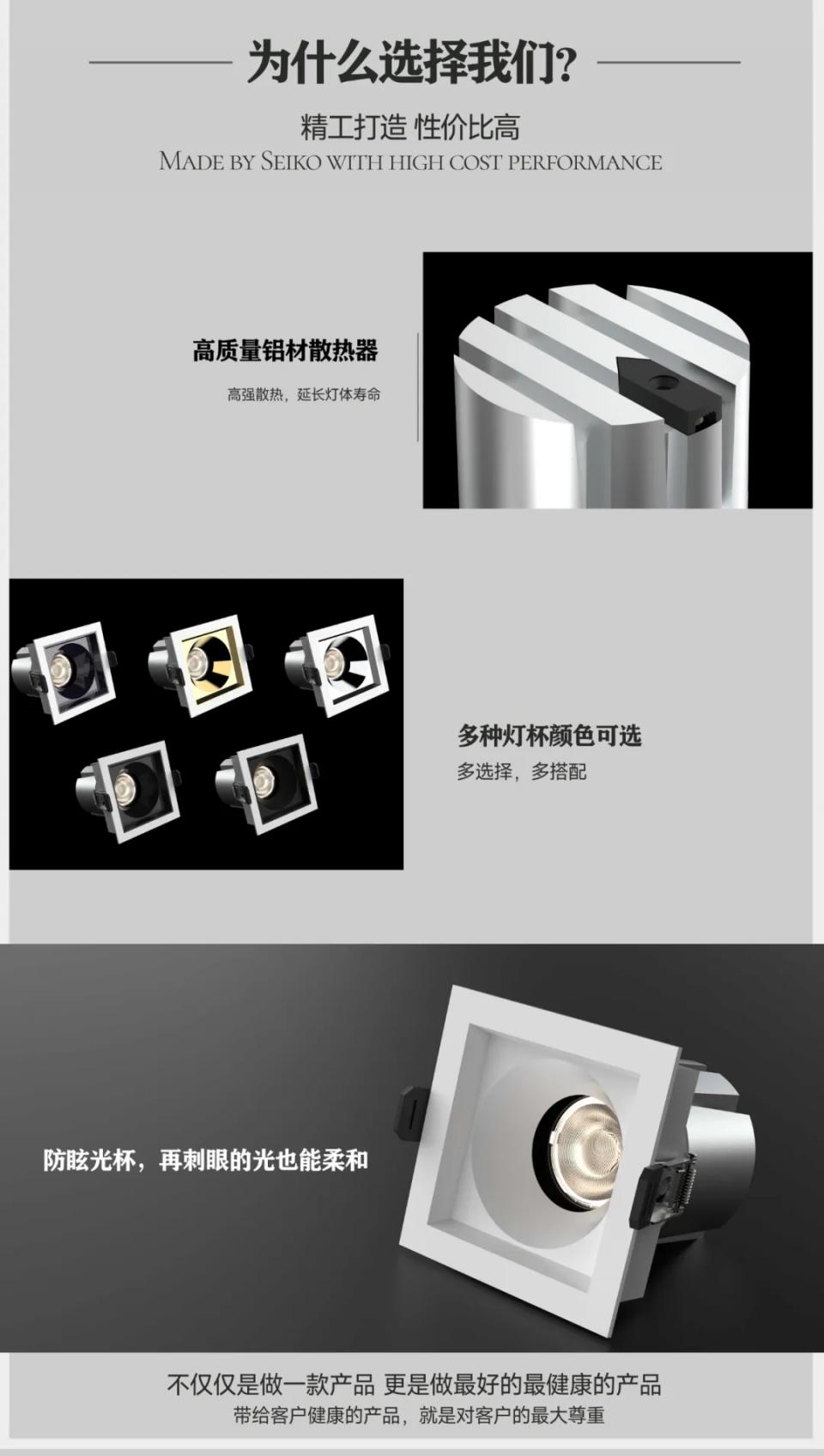 【米家全屋智能】1304支架36º角防眩射灯浪琴暗装方形射灯