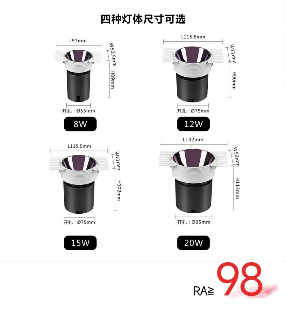 L91+w52.5*H89mm 开孔55mm 8w 枪黑杯 米家智能