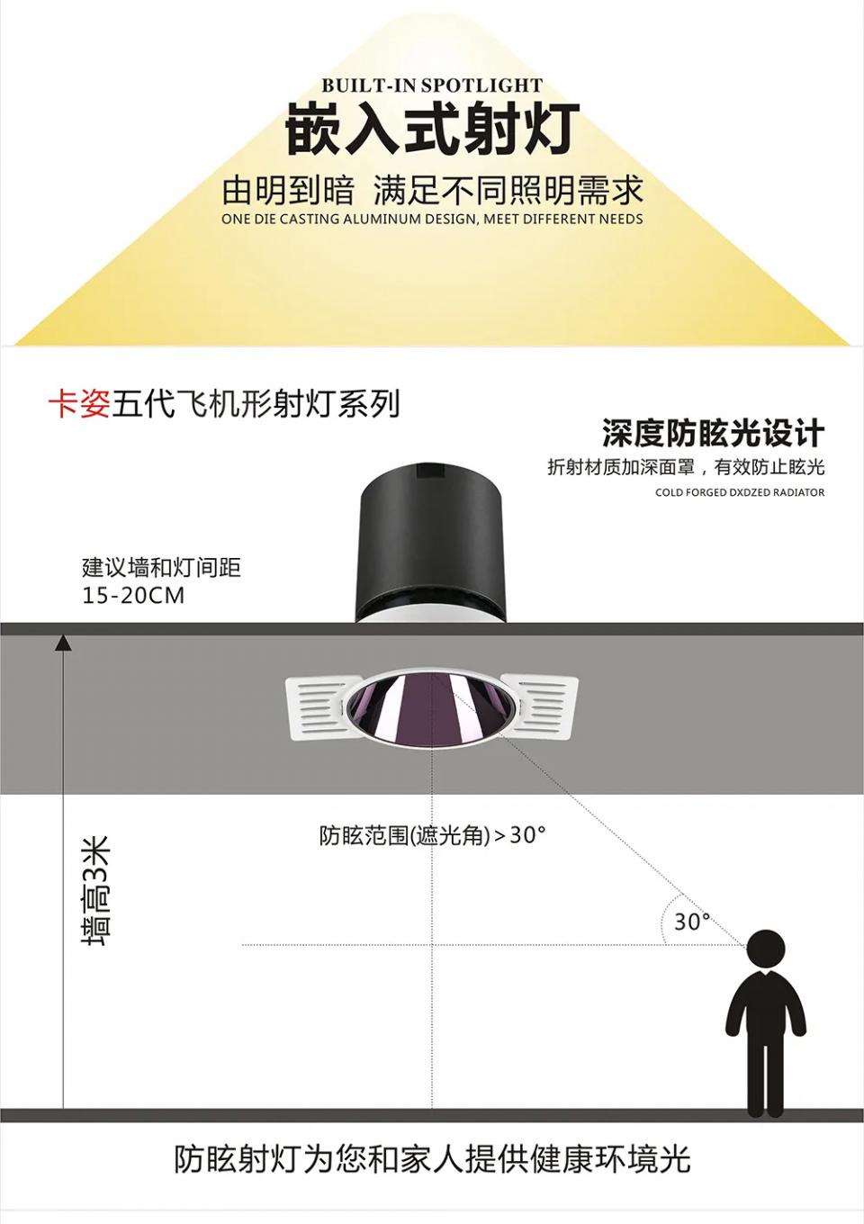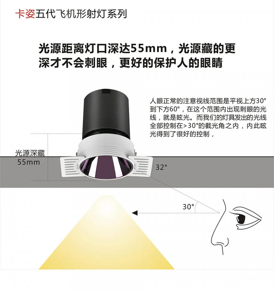 1304支架36º角防眩射灯五代飞机形无边框款