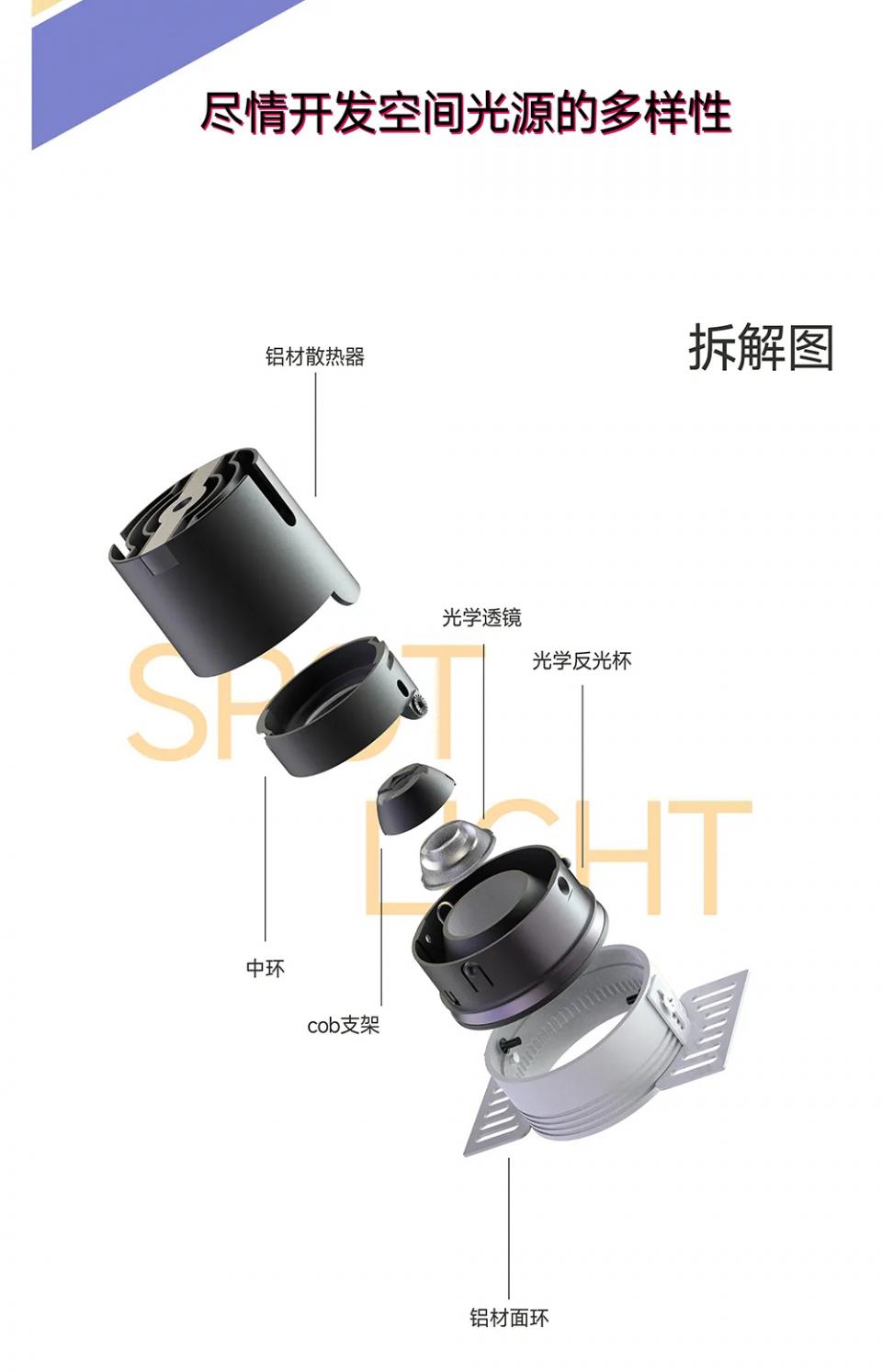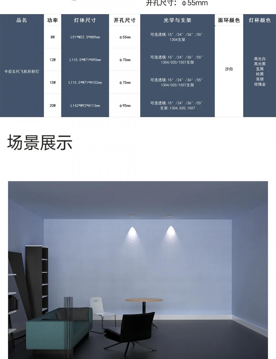 【米家全屋智能】1304支架36º角防眩射灯五代飞机形无边框款