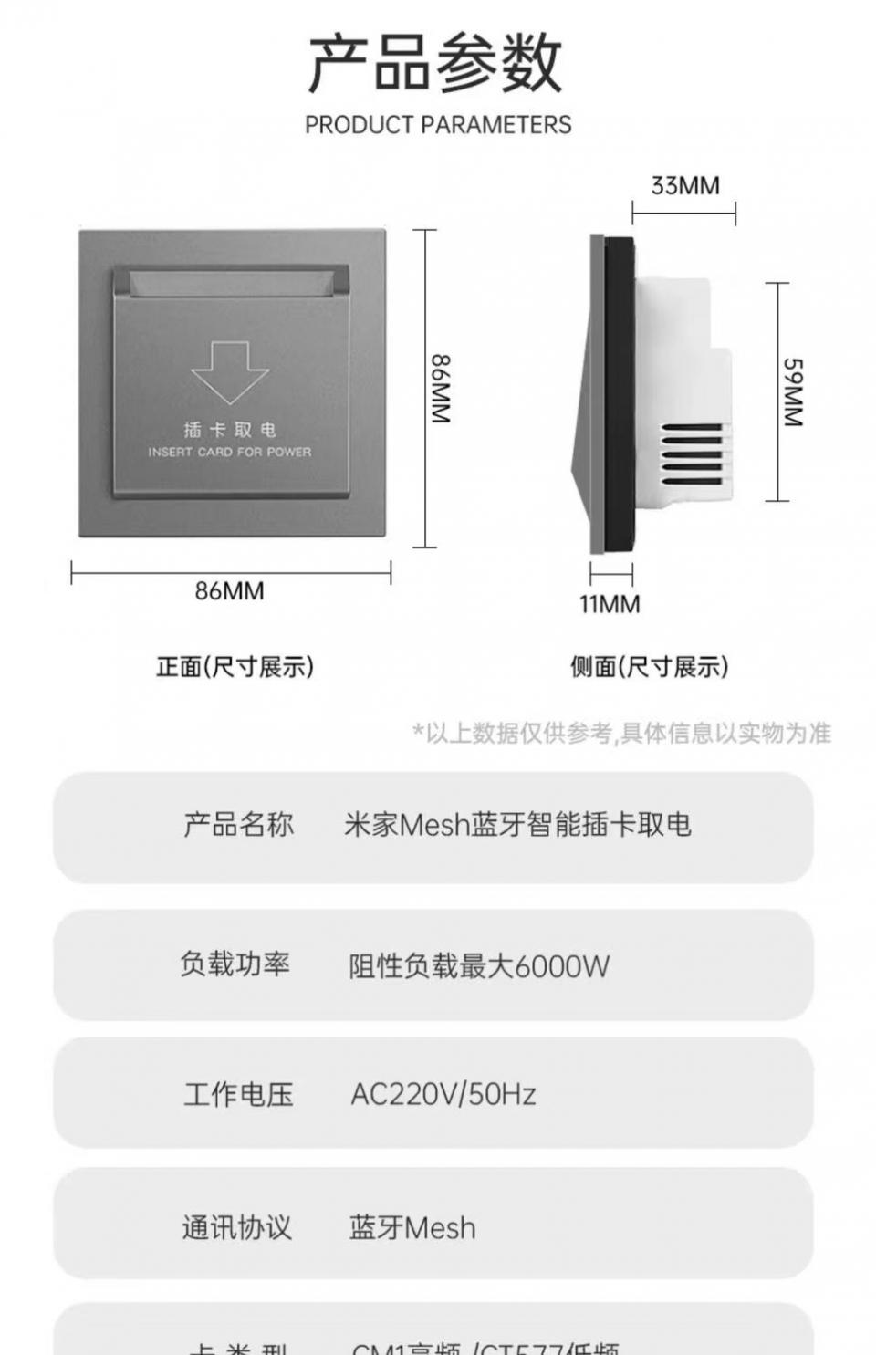 【米家全屋智能】小米适用米家智能插卡取电开关面板小米