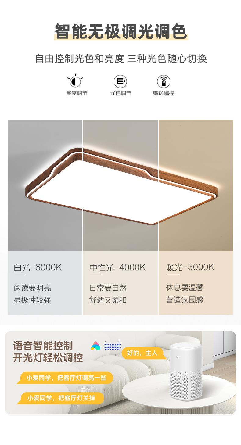 【米家全屋智能】新款木纹色吸顶灯简约现代大气LED灯圆形家用卧室房间灯具M8979