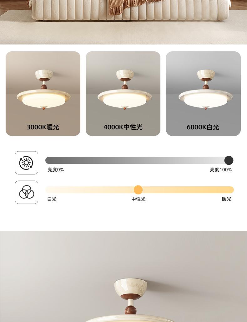 总高:350MM 灯体:直径500*H60mm 全亮100W 三色变光