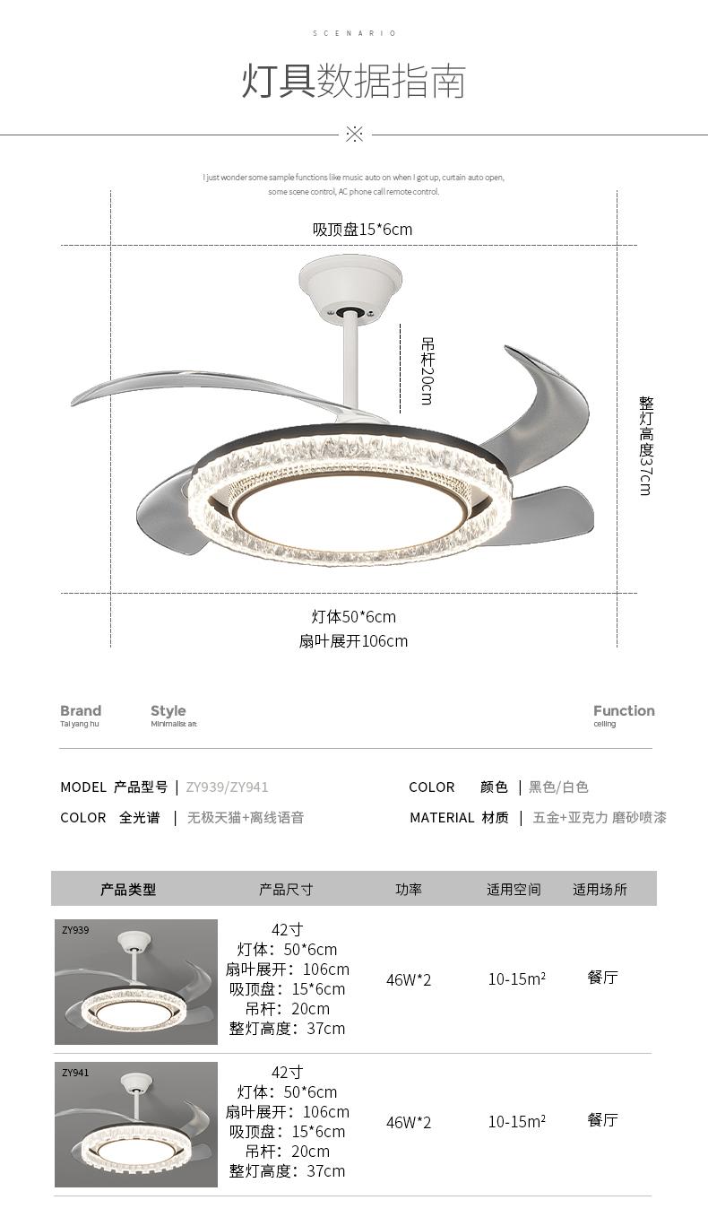 【米家全屋智能】风扇吊灯现代简约大气新款餐厅灯LZ-ZY941/白色/米家智能