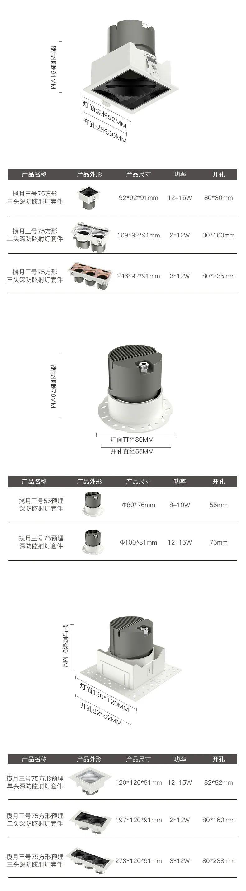 【米家全屋智能】无主灯客厅照明防眩光射灯36度角led轻奢天花灯家用嵌入式揽月三号