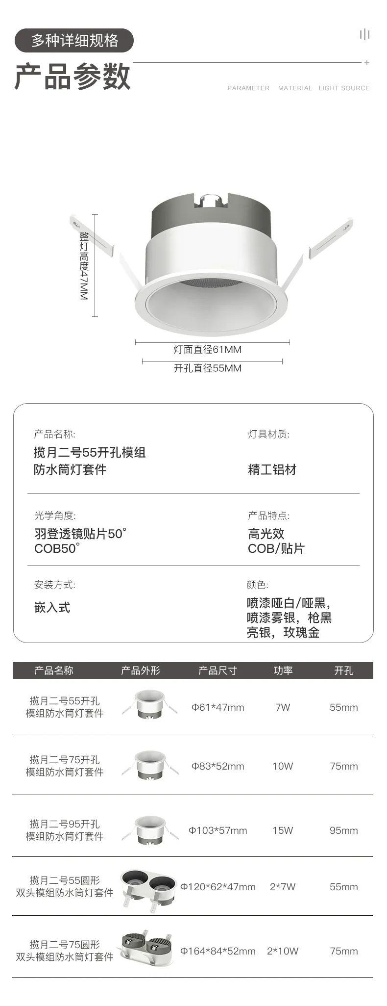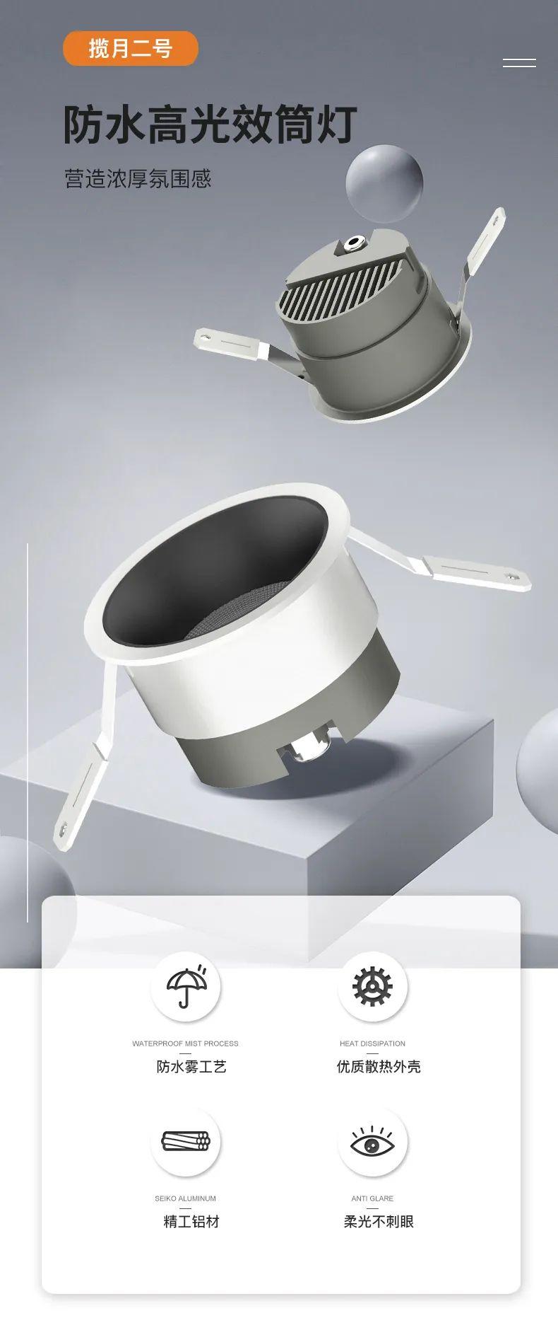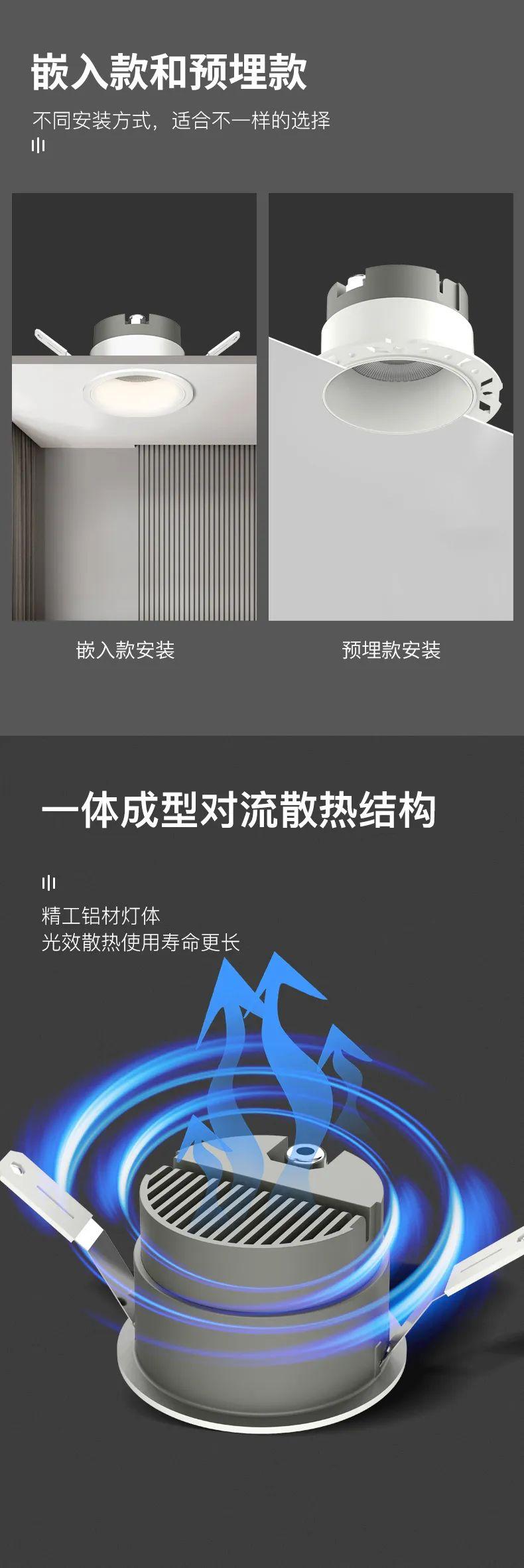 【米家全屋智能】无主灯客厅照明防眩光筒灯36度角led轻奢天花灯家用嵌入式揽月二号