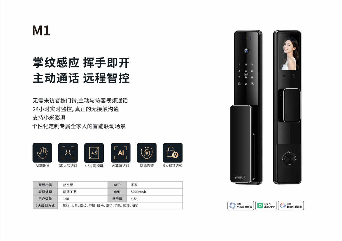 【米家全屋智能】因硕智能门锁M1系列米家生态