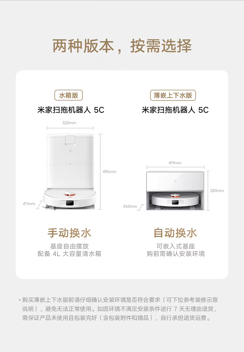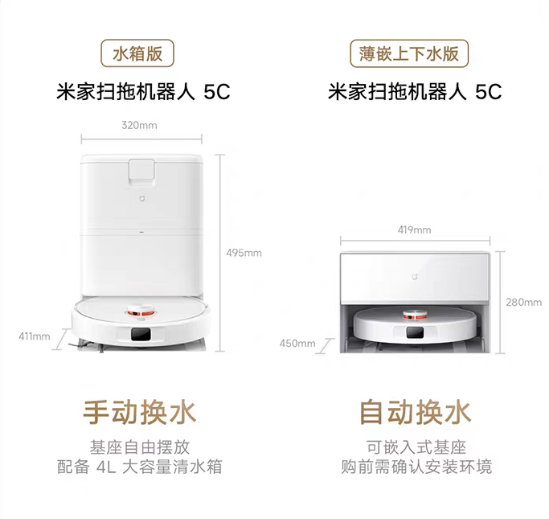 小米扫地机器人5C薄嵌上下水版