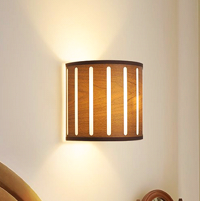 壁灯中古风胡桃木纹复古布艺护眼艺术客厅沙发边卧室床头立式灯YD5002