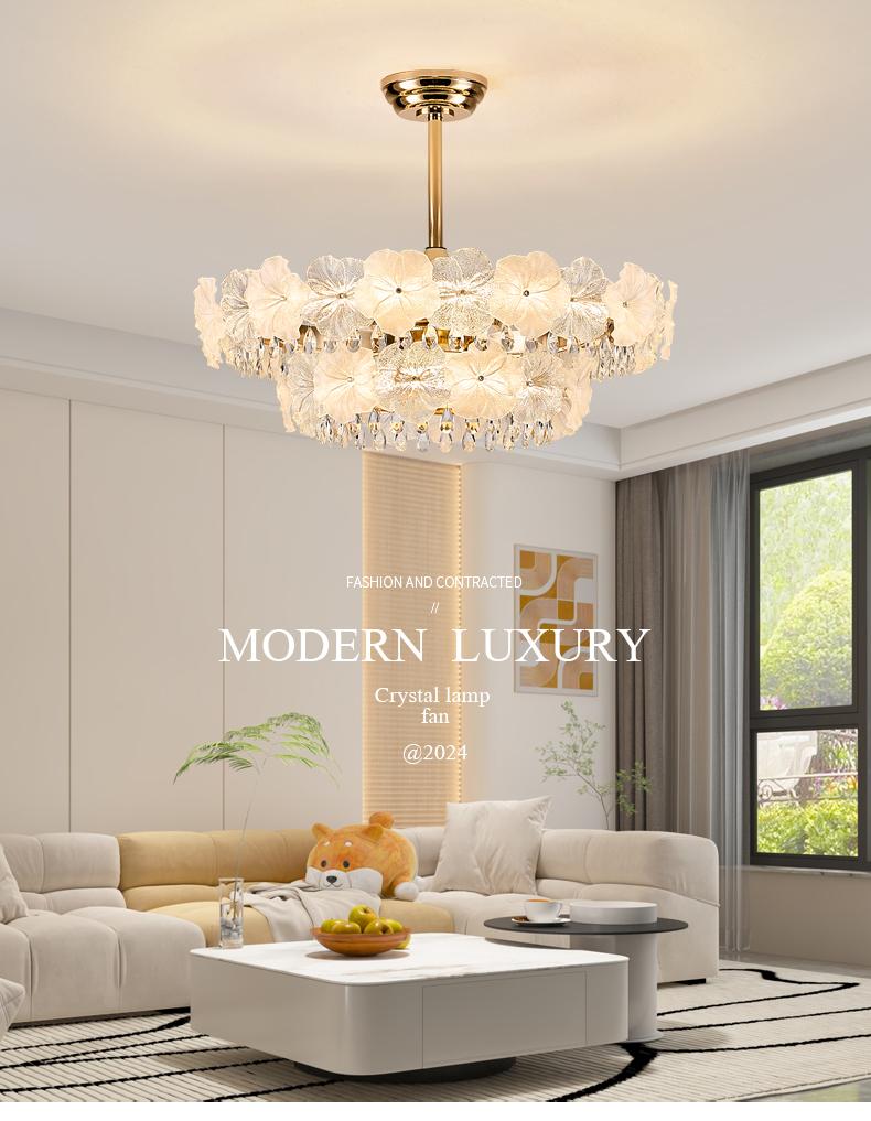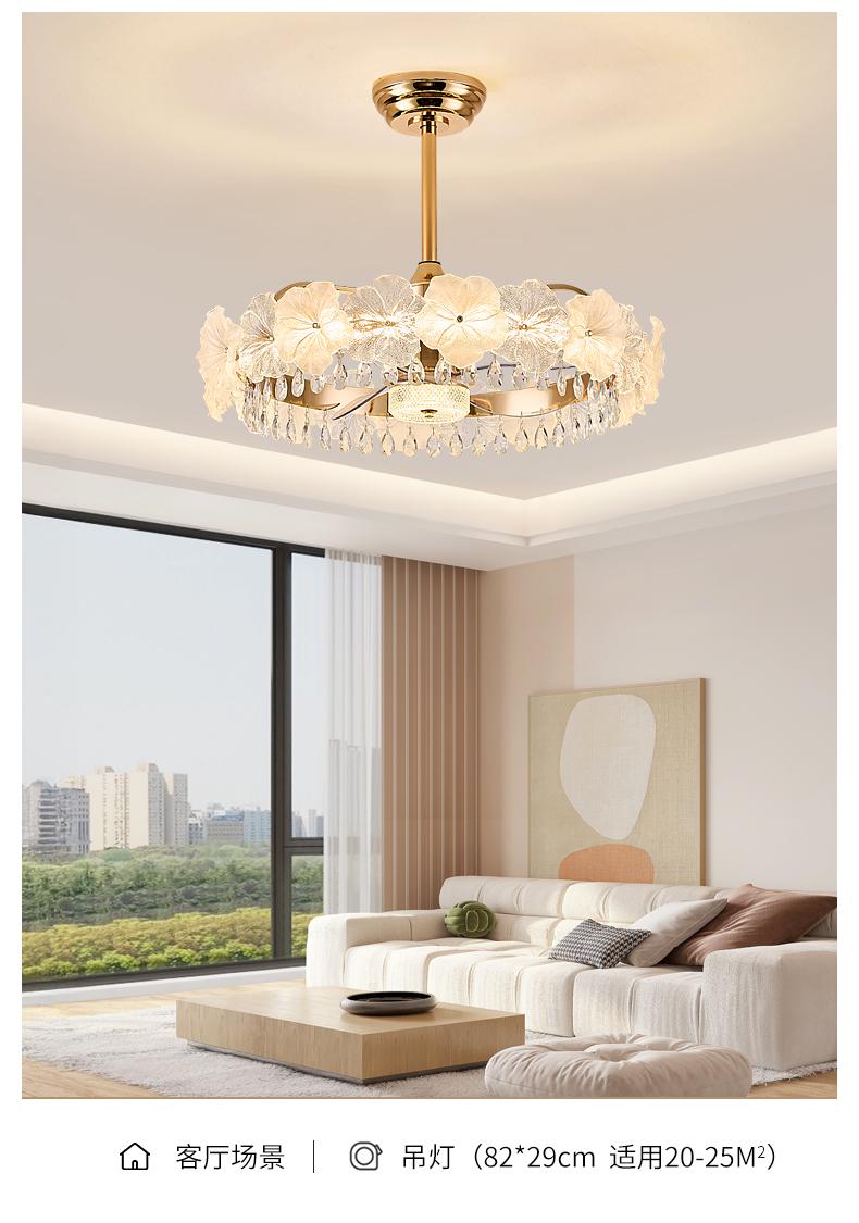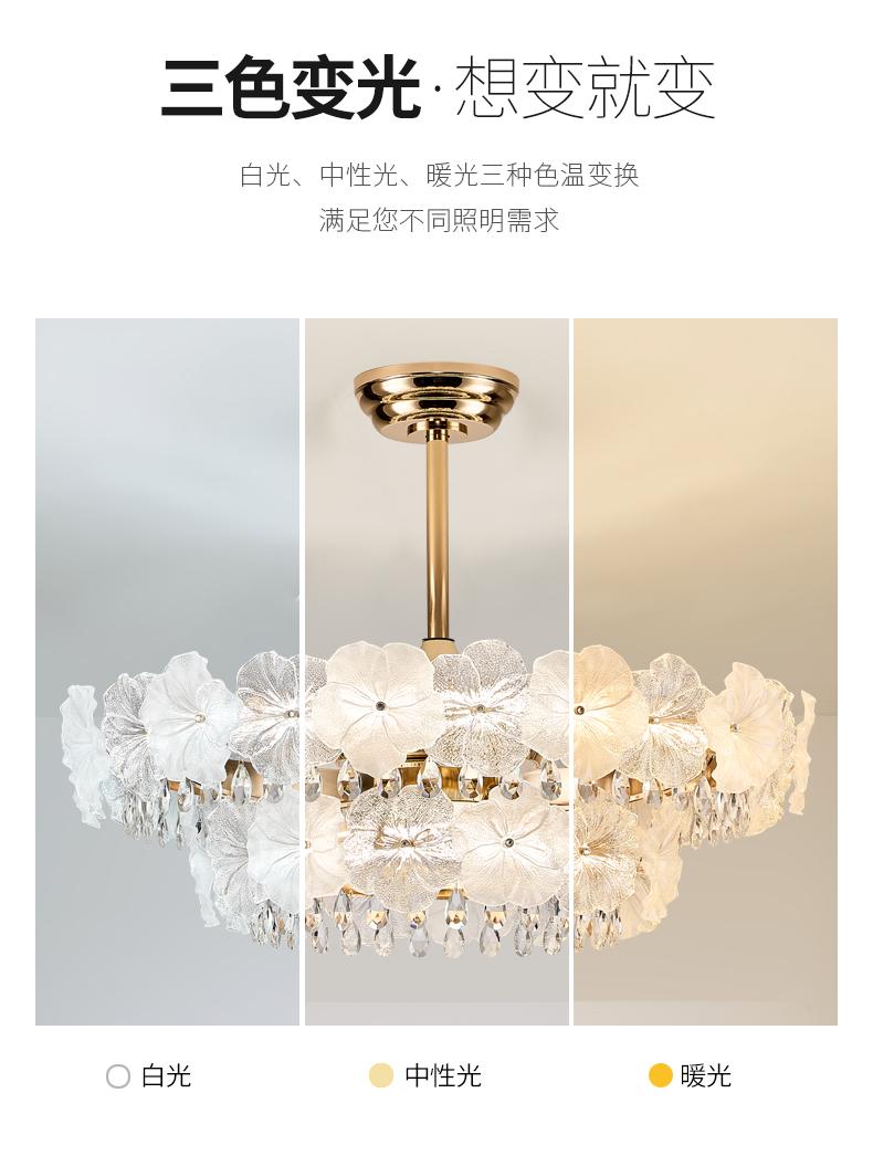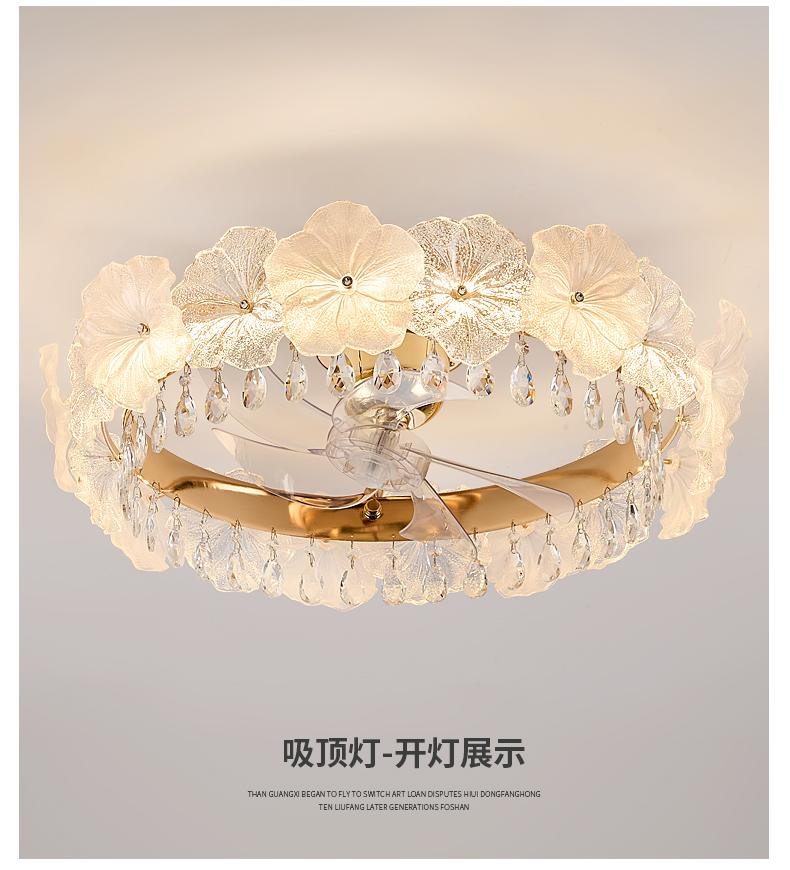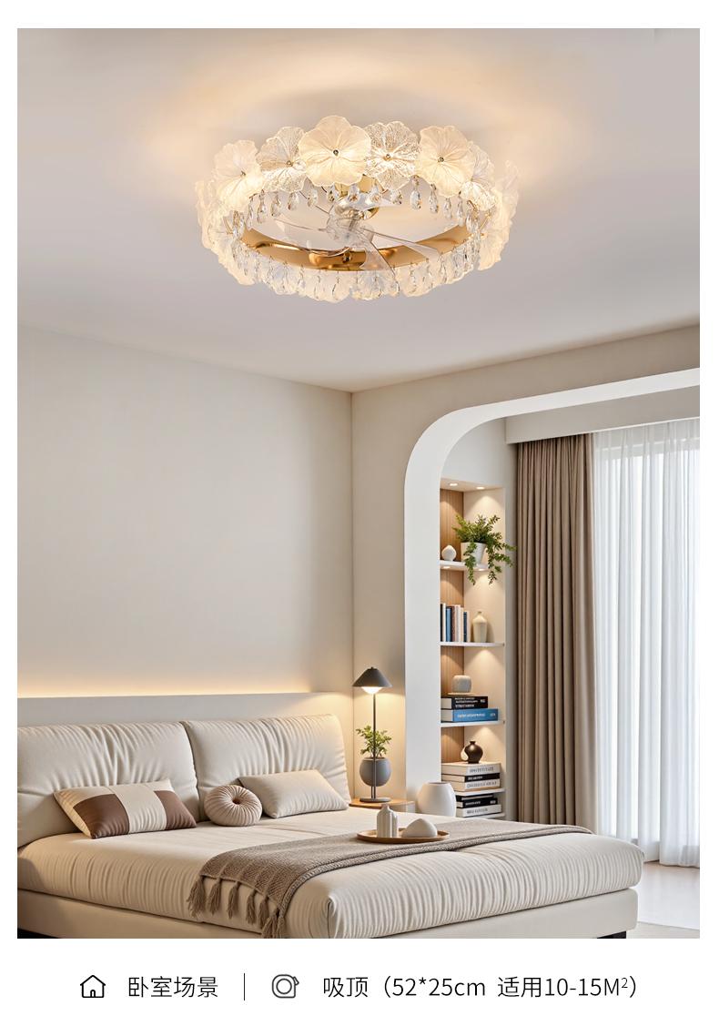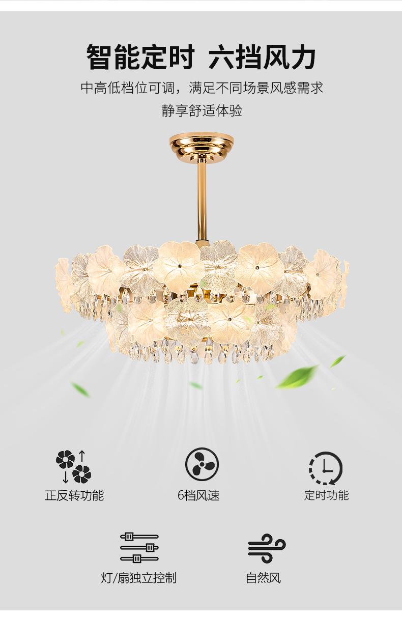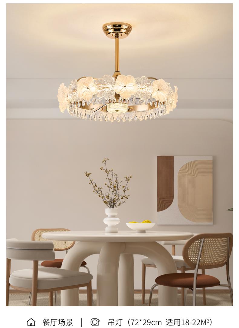 法式奶油风客厅风扇灯轻奢餐厅吊灯高级感花朵卧室吸顶灯HY-8601/820+520