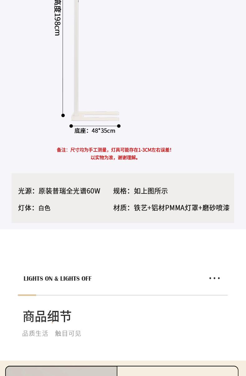 整灯高198cm灯头55*35*3cm底座48*35cm 60w中性光