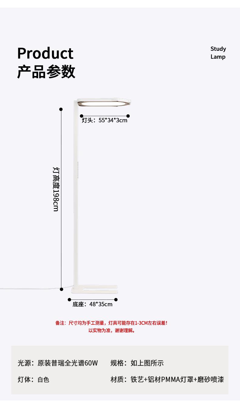 整灯高198cm灯头55*34*3cm底座48*35cm 60w中性光
