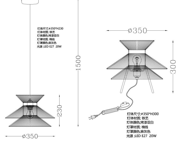 中古风北欧简约日式氛围麻绳吊灯DY035P
