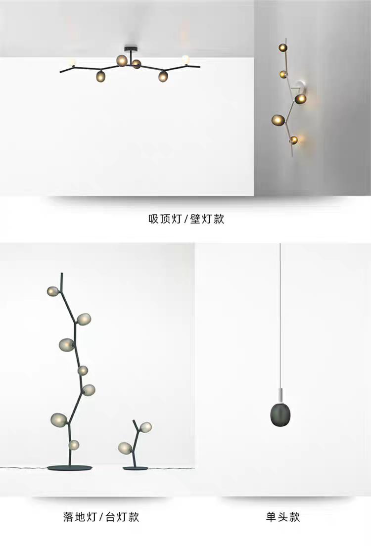北欧轻奢创意树枝彩色玻璃单头吊灯常春藤
