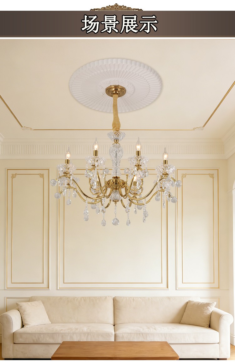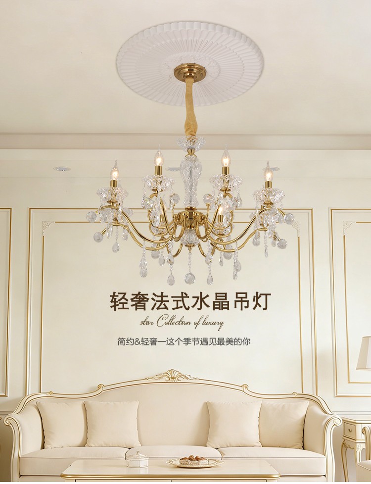 2026新款铁艺蜡烛管客厅设计水晶吊灯1906