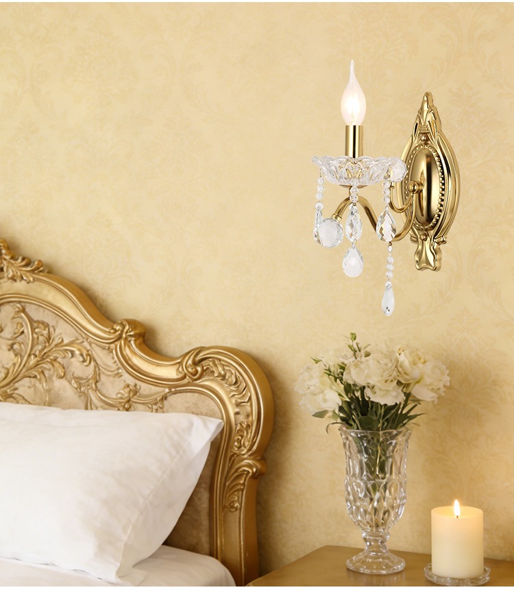 2026新款铁艺蜡烛管客厅设计水晶壁灯1906