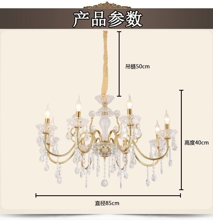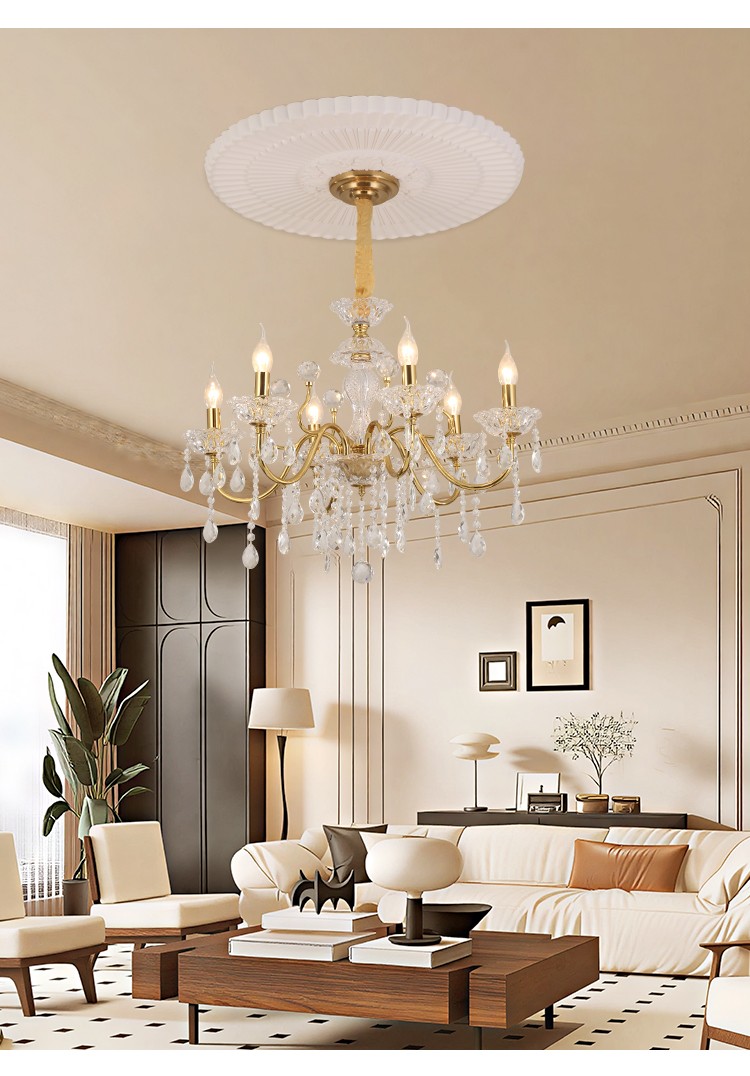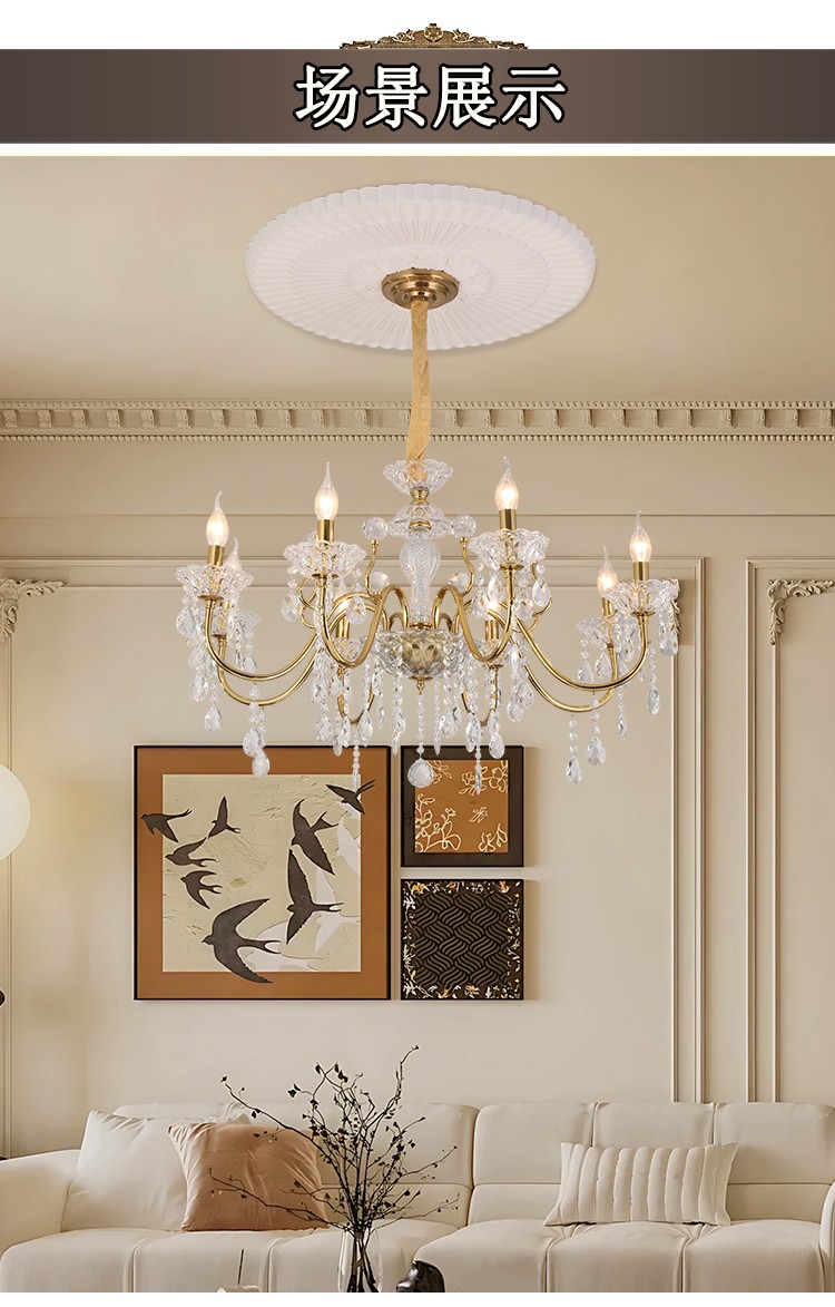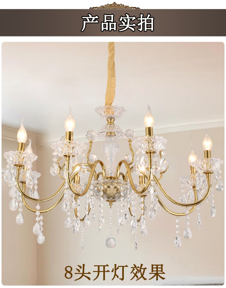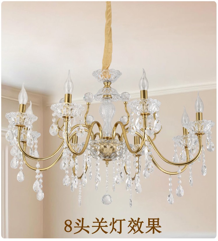 2026新款铁艺蜡烛管大厅卧室高级水晶吊灯1909