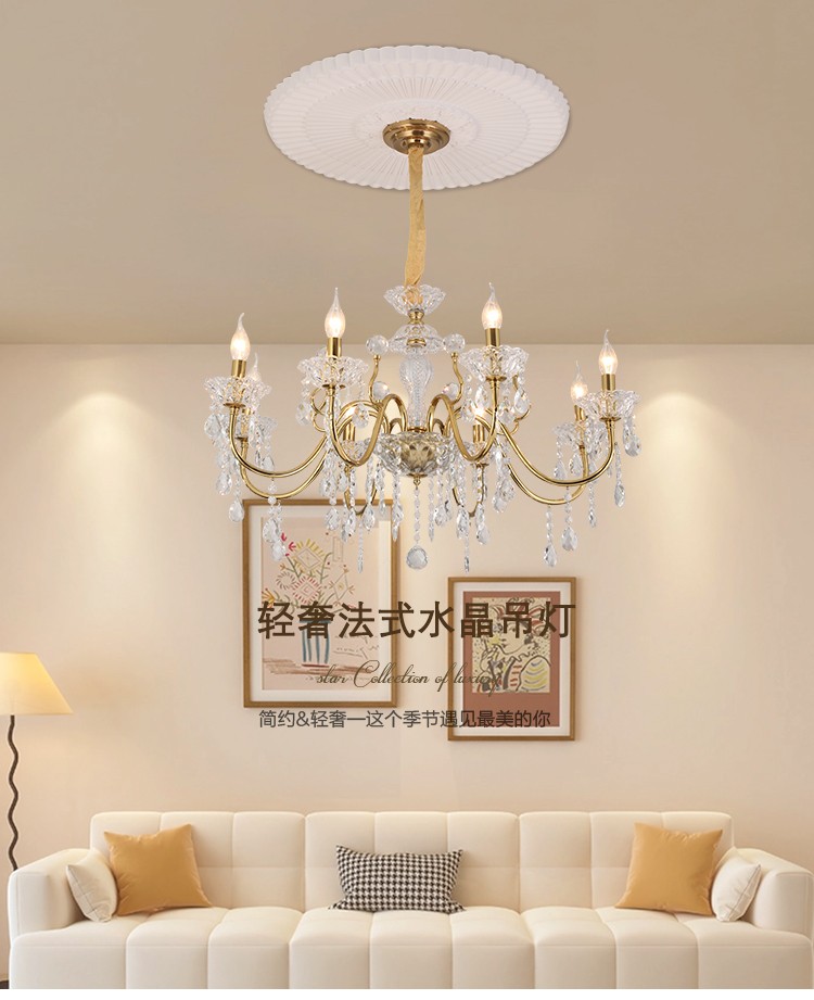 2026新款铁艺蜡烛管大厅卧室高级水晶吊灯
