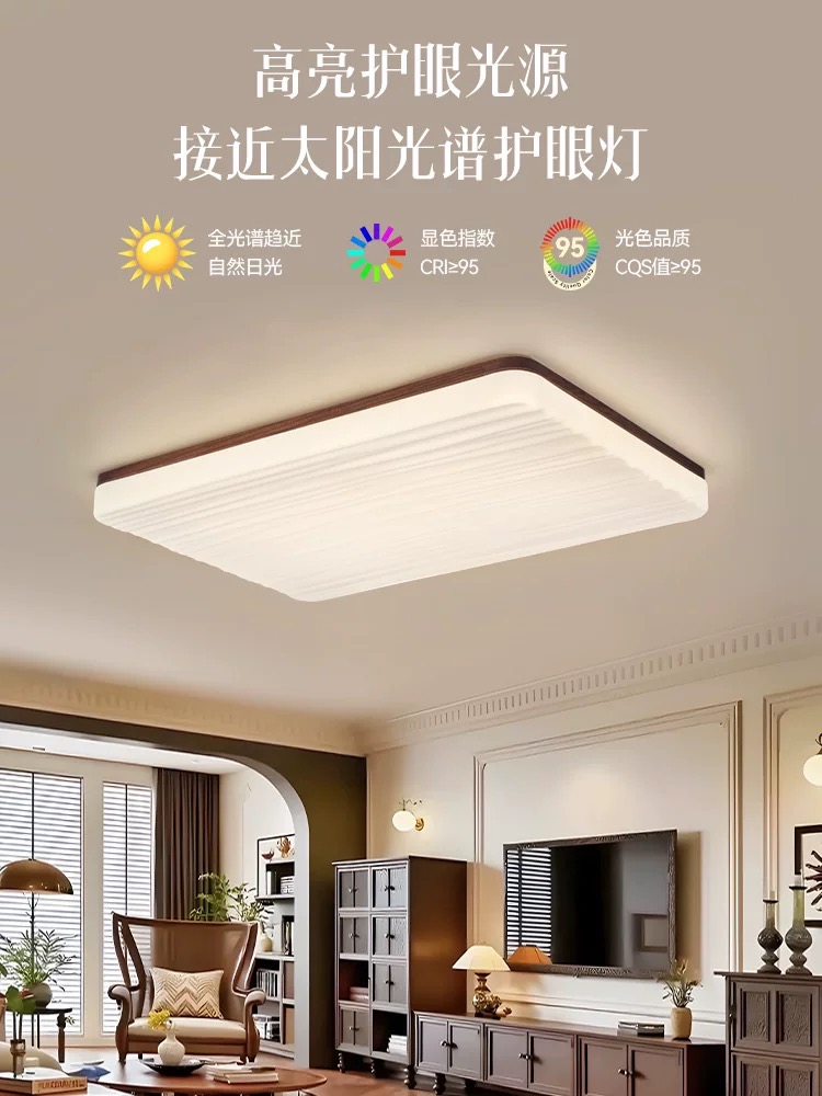 客厅灯吸顶灯创意胡桃木色卧室灯主灯护眼中古风侘寂风家装吸顶灯818