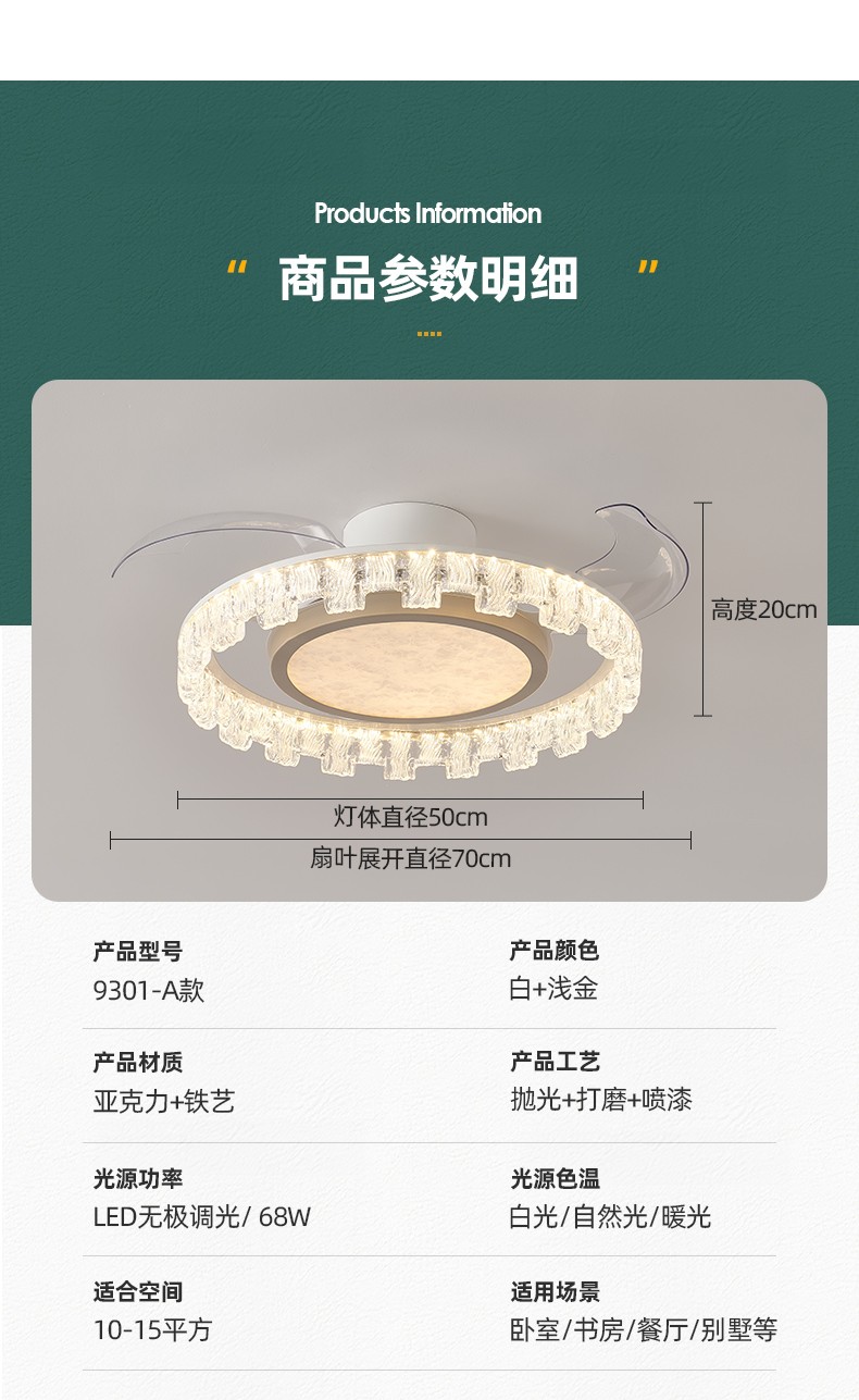 北欧隐形风扇灯YSL-9301