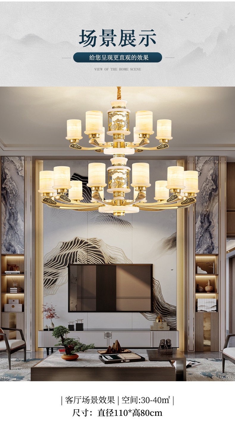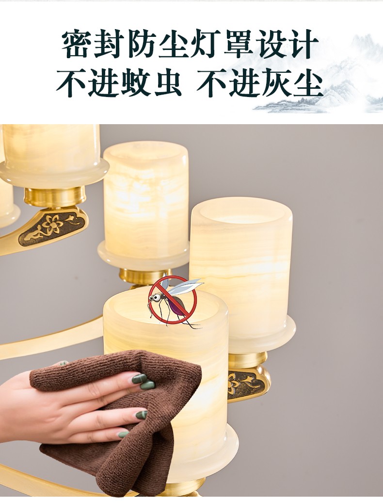 全铜灯臂+玉石锅底+玉石灯罩+铁艺
