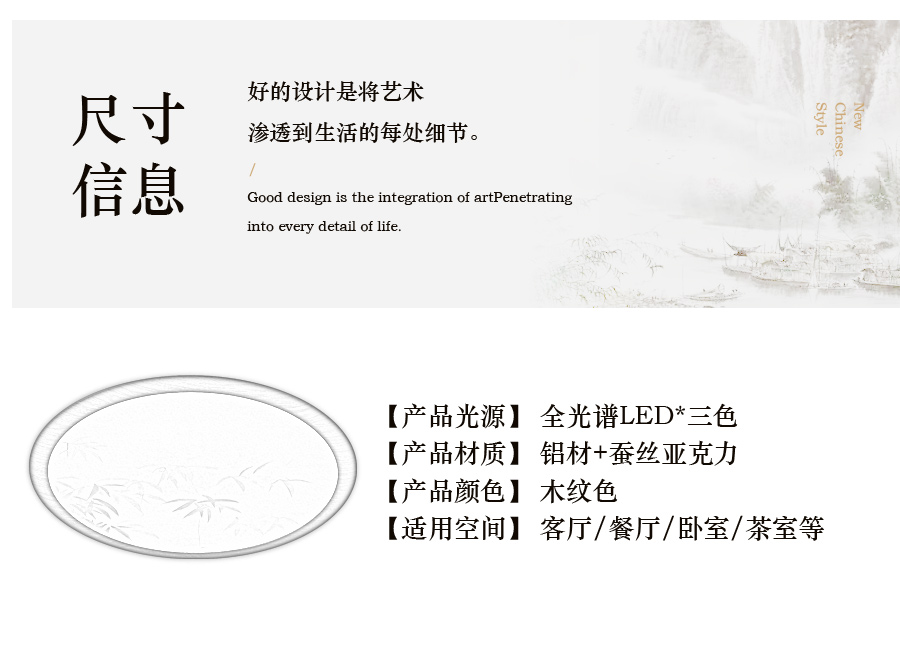 竹叶款 直径32*高3.5CM 全光谱三色LED 55W