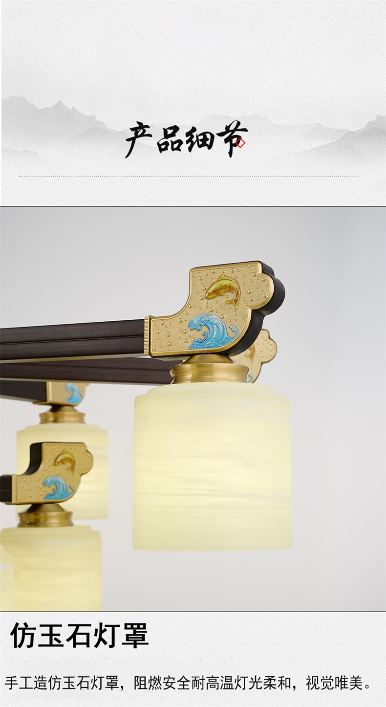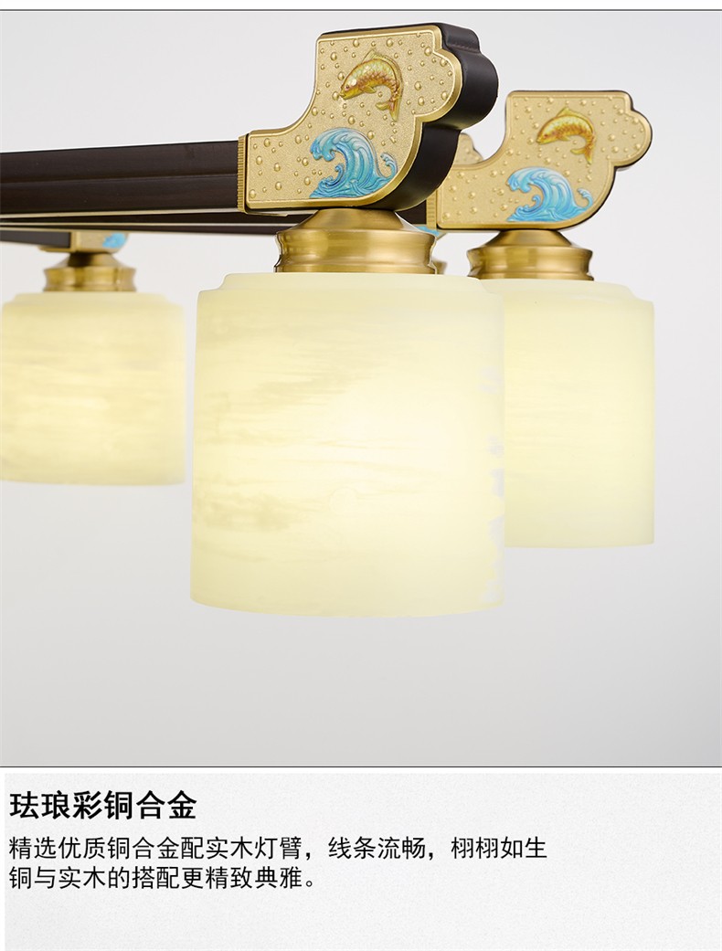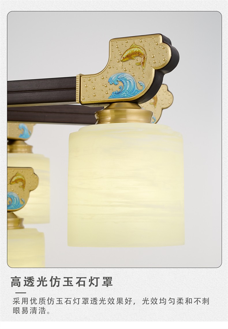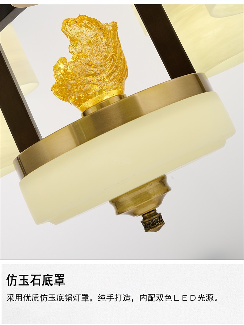 新中式铜合金+木+玻璃罩灯体 客厅餐厅书房卧室简约吊灯2265