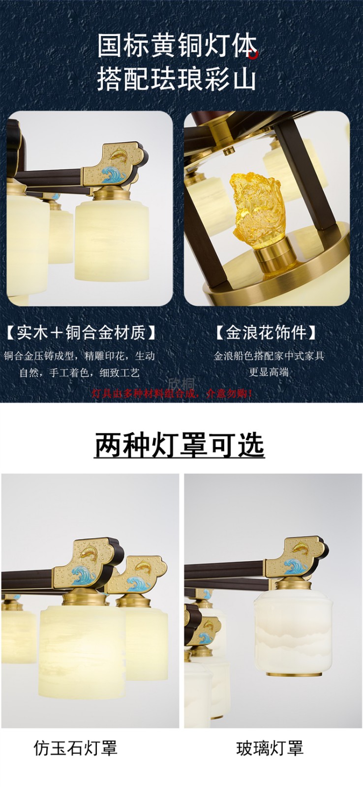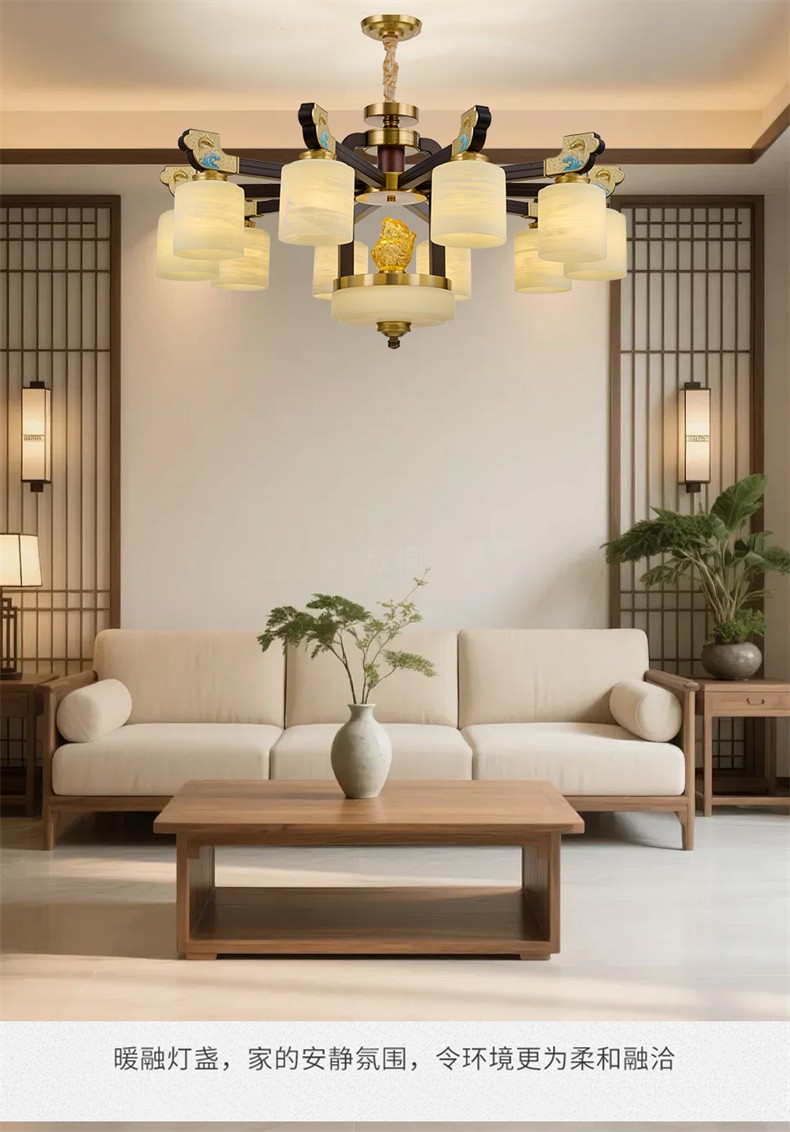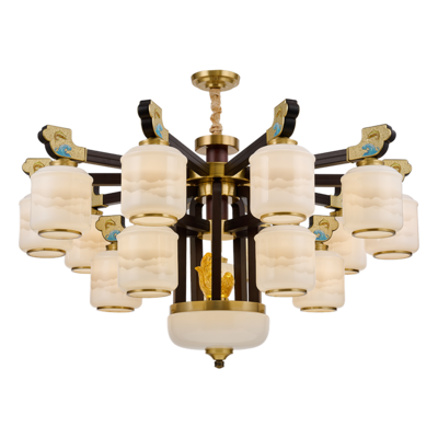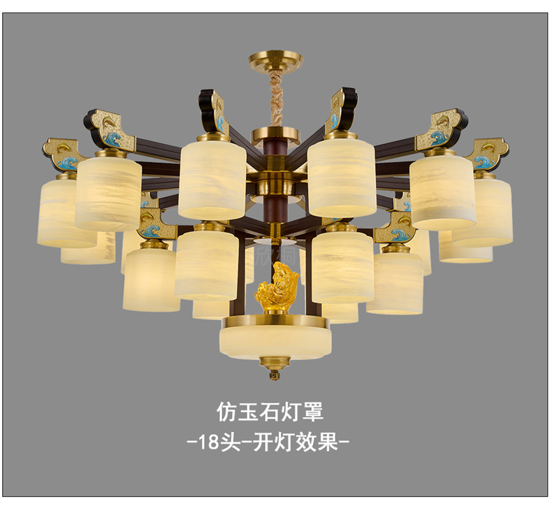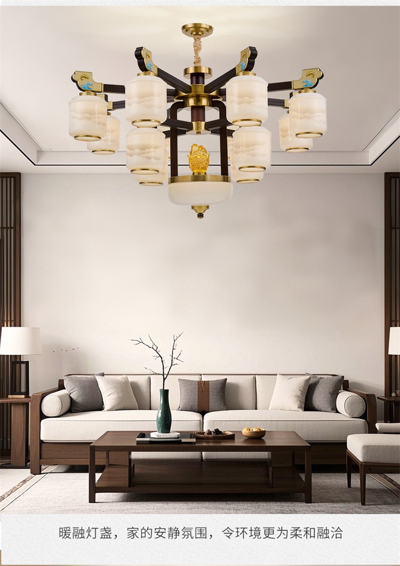 新中式铜合金+木+玻璃罩灯体 客厅餐厅书房卧室简约吊灯2265