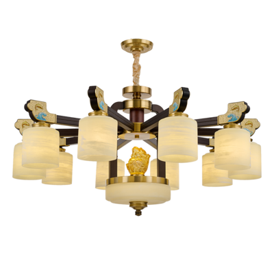 新中式铜合金+木+仿玉罩灯体 客厅餐厅书房卧室简约吊灯2265