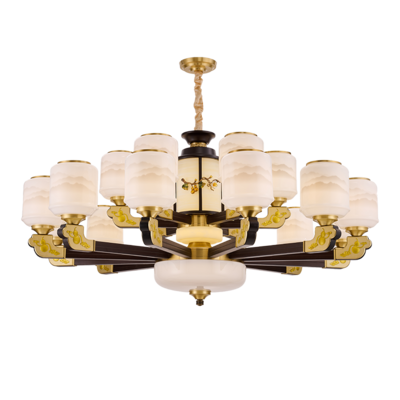 新中式铜合金+木+玻璃罩灯体 客厅餐厅书房卧室简约吊灯1166