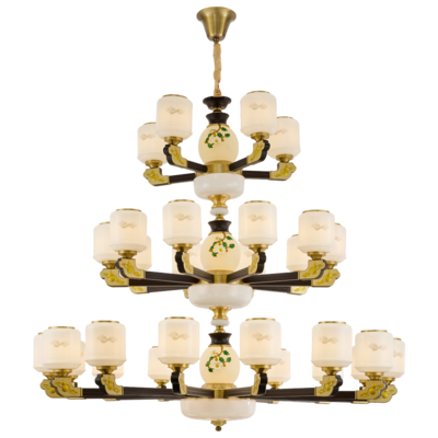 新中式铜合金+木+玻璃罩灯体 客厅餐厅书房卧室简约吊灯2266
