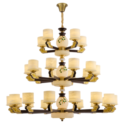 新中式铜合金+木+仿玉罩灯体 客厅餐厅书房卧室简约吊灯2266