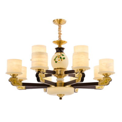 新中式铜合金+木+仿玉罩灯体 客厅餐厅书房卧室简约吊灯2266