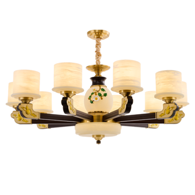 新中式铜合金+木+仿玉罩灯体 客厅餐厅书房卧室简约吊灯2266
