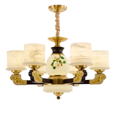 新中式铜合金+木+仿玉罩灯体 客厅餐厅书房卧室简约吊灯2266