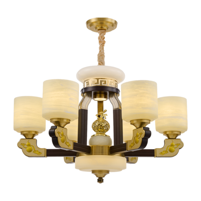 新中式铜合金+木+仿玉罩灯体 客厅餐厅书房卧室简约吊灯3366